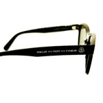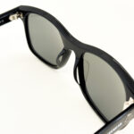 重厚感のあるスクエアシェイプとブラックフレームが、シンプルながらも存在感を放つデザインです。テンプルには両ブランドのロゴがさりげなく配置され、コラボならではの特別感が演出されています。