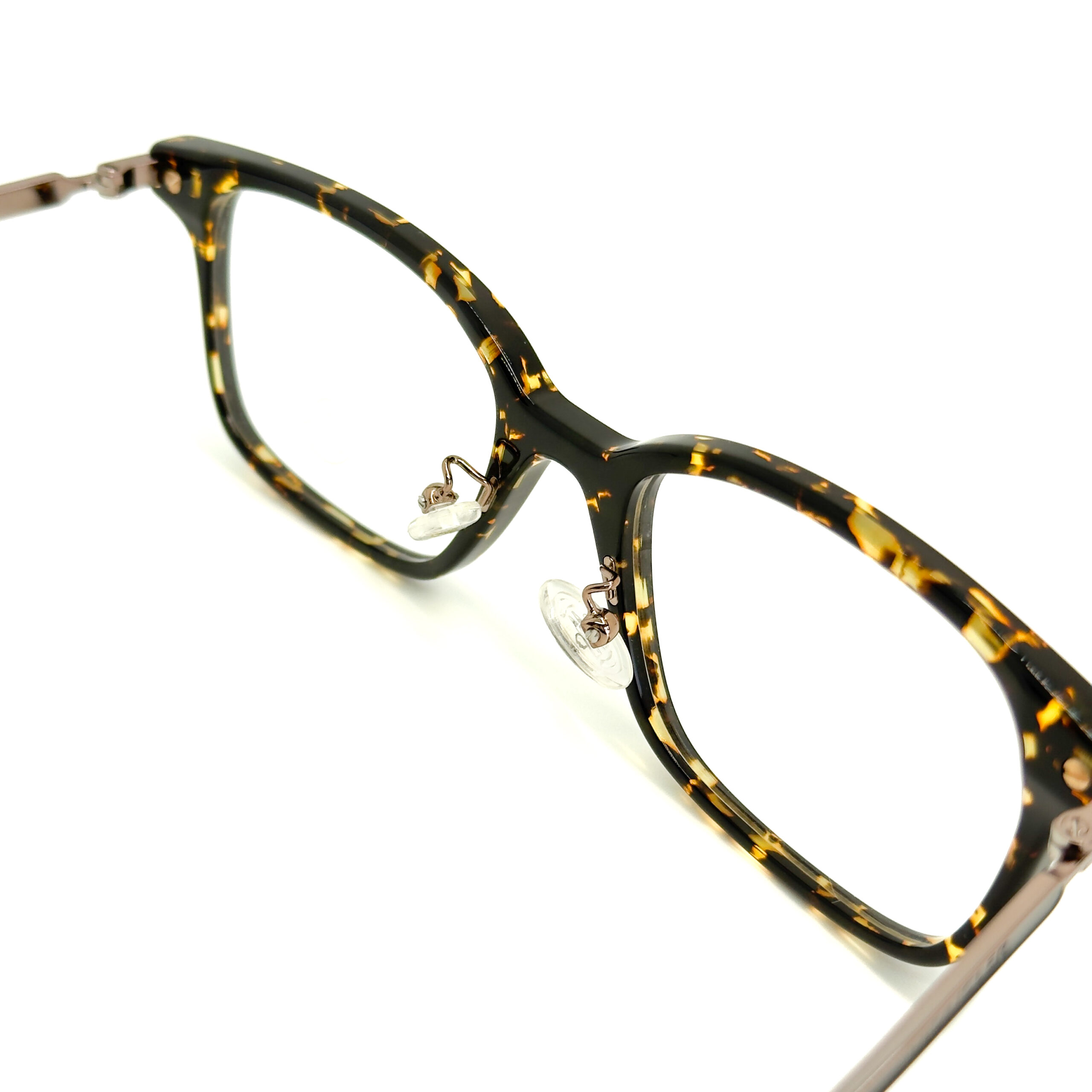 丸みのあるボストン寄りのシェイプに、アセテートとメタルを組み合わせたコンビネーションフレームが特徴です。