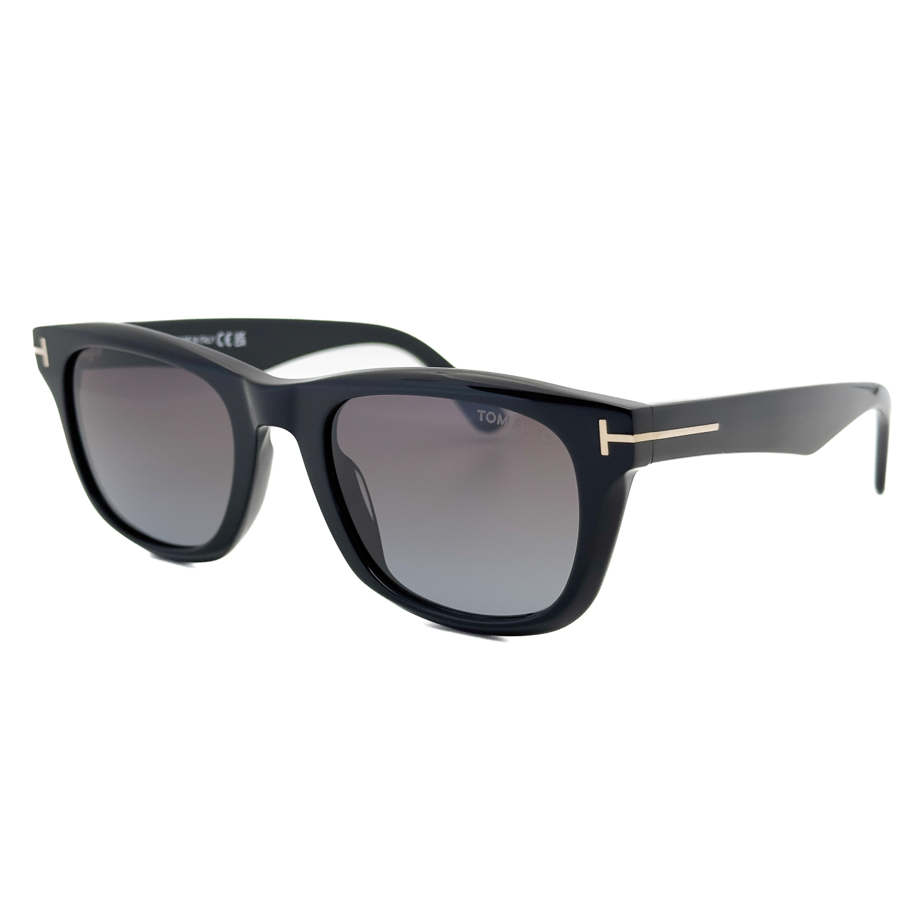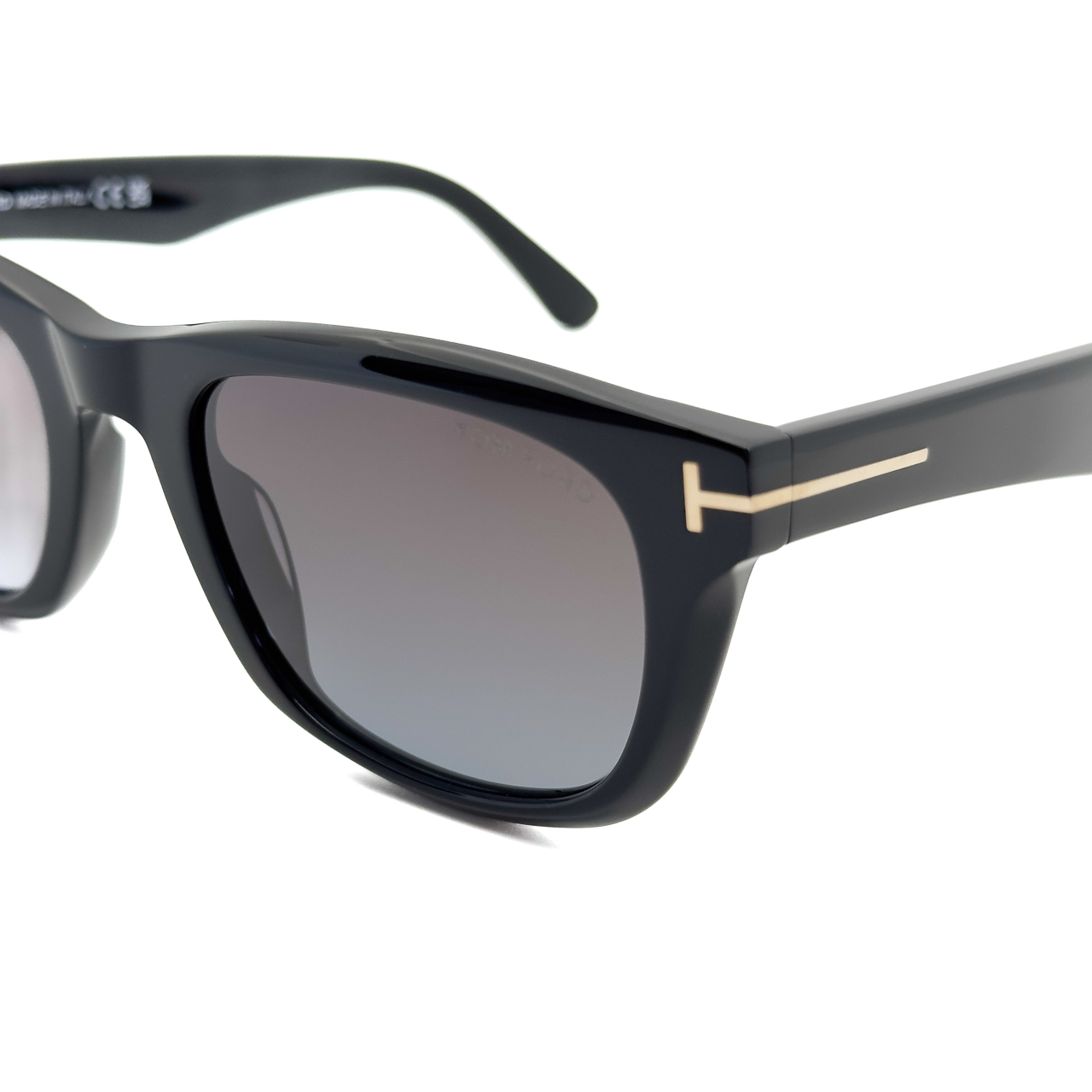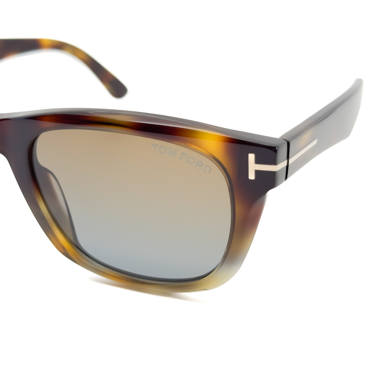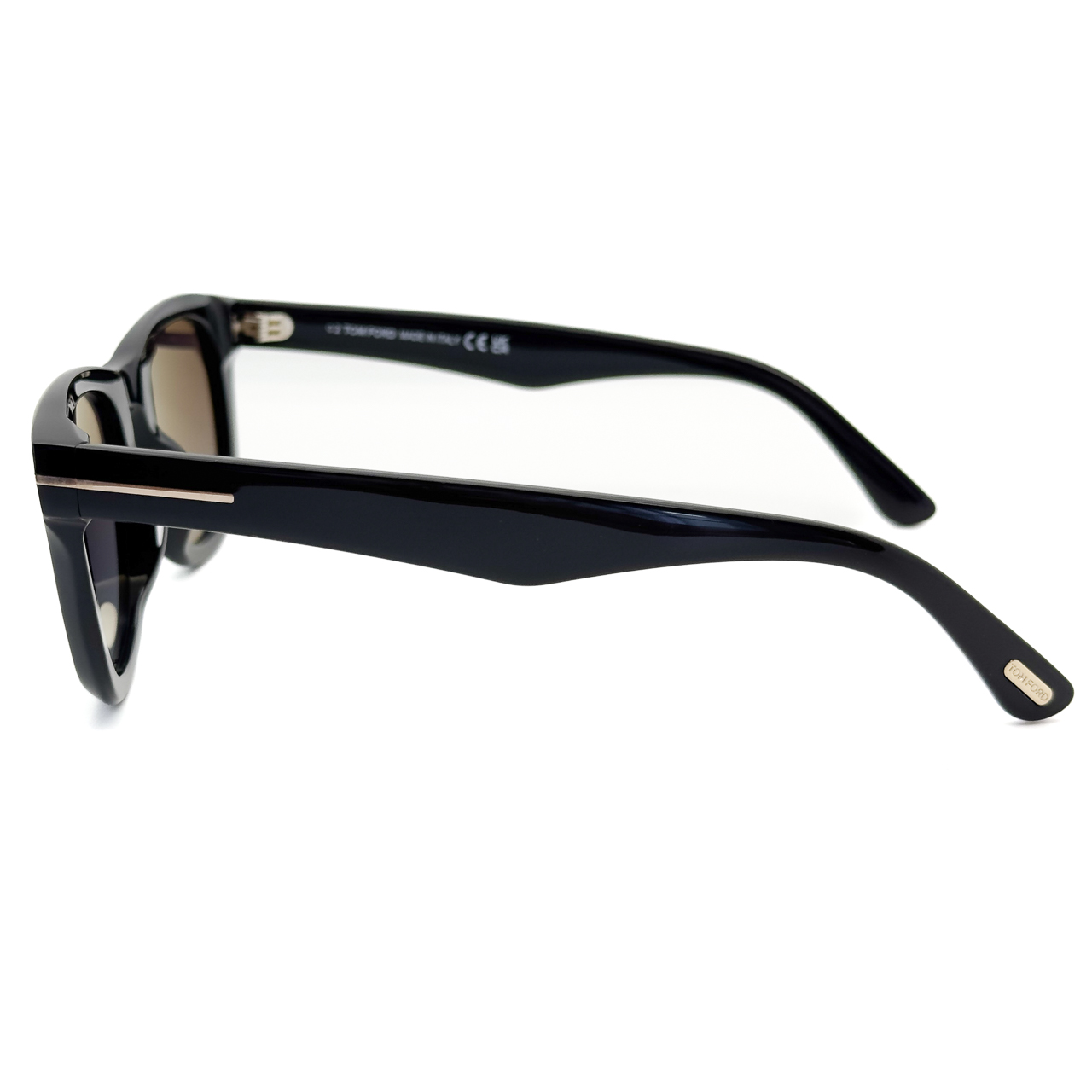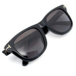 ブラック×ゴールドのトムフォードらしい配色のフレームに僅かに目が見える薄さのブルーの偏光レンズを標準装備。クラシカルなスクウェアシェイプのレンズに太めのテンプルラインが特徴的。テンプル部分に配されたトムフォードを表す”T”のロゴが存在感と高級感を演出します。