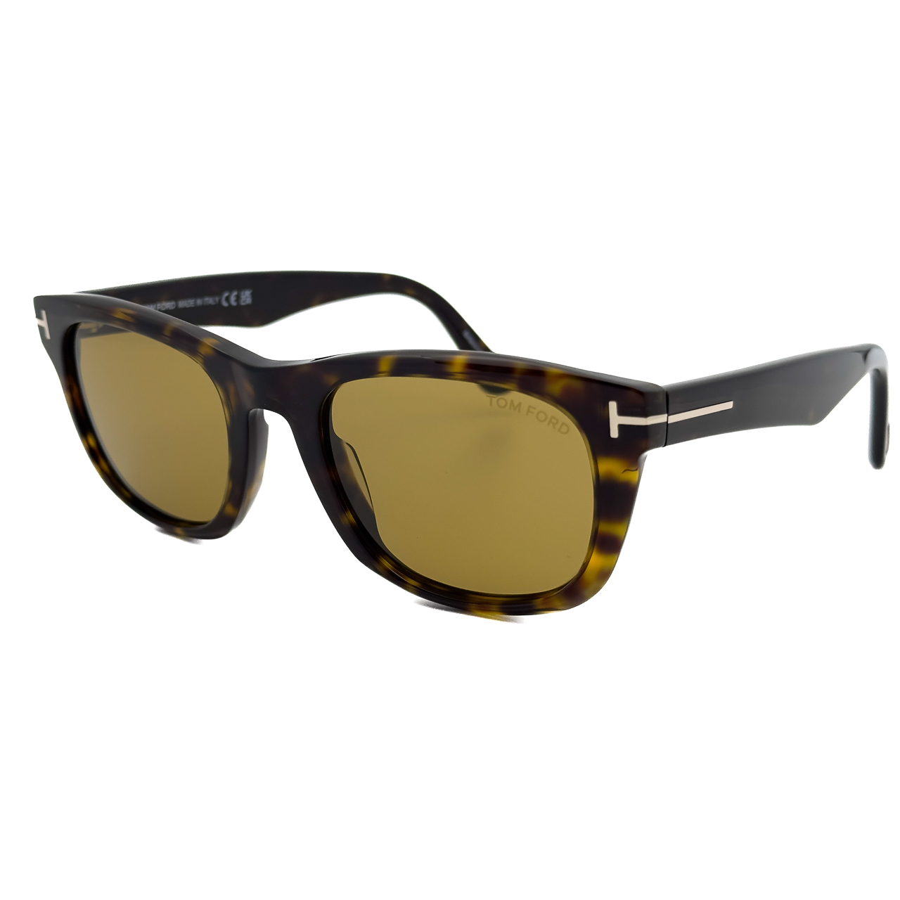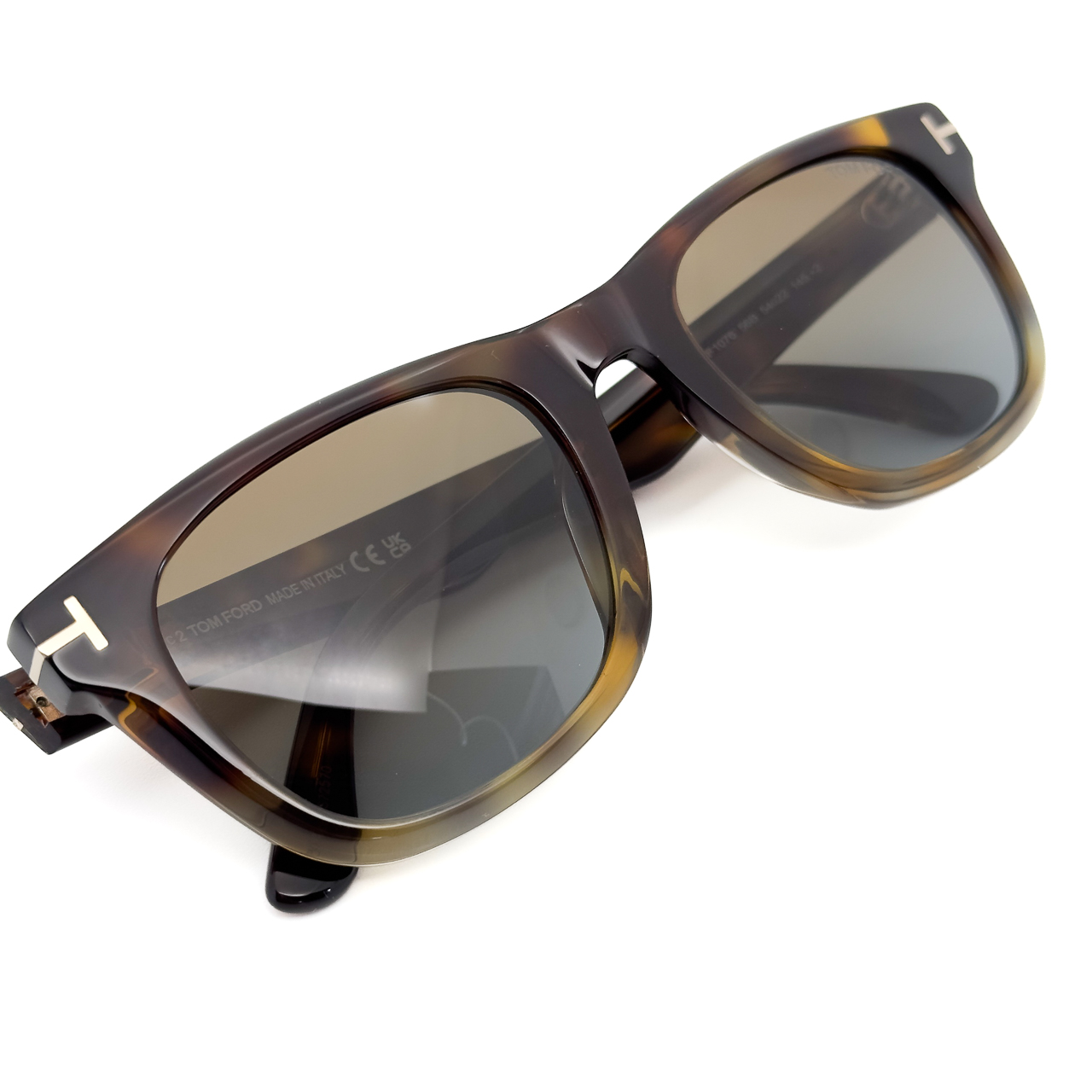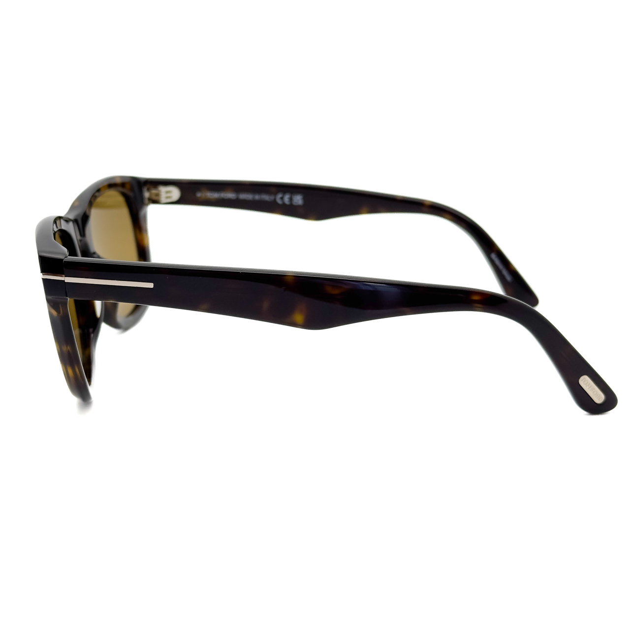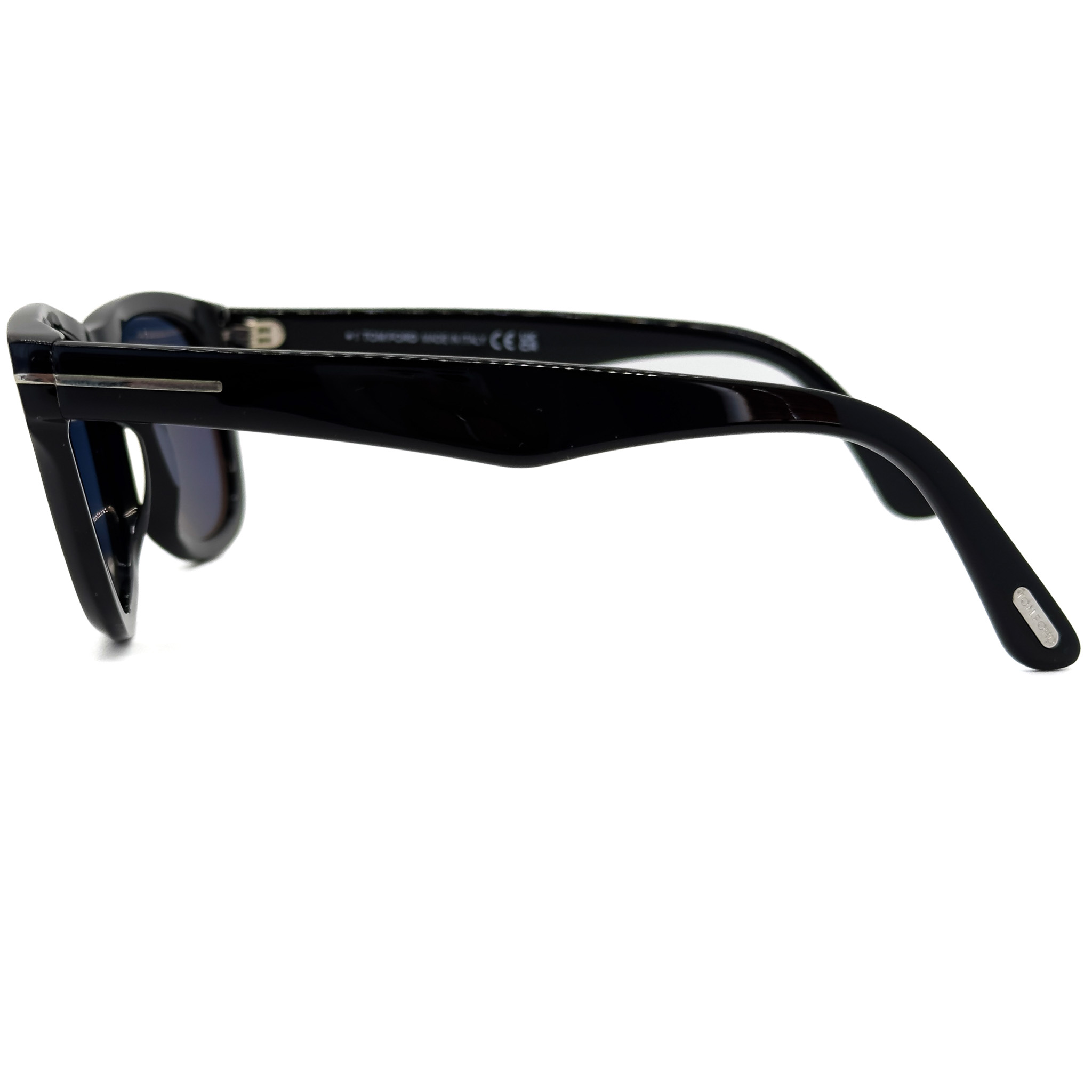 ブラック×ゴールドのトムフォードらしい配色のフレームに僅かに目が見える薄さのブルーの偏光レンズを標準装備。クラシカルなスクウェアシェイプのレンズに太めのテンプルラインが特徴的。テンプル部分に配されたトムフォードを表す”T”のロゴが存在感と高級感を演出します。